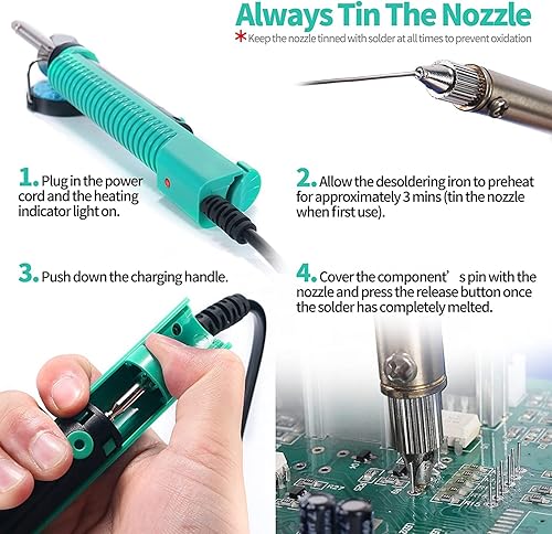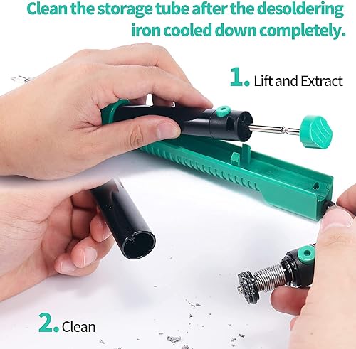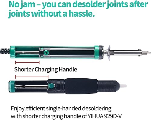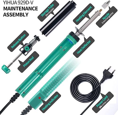 YIHUA 929D-V Elektrisches Vakuum Entlötkolben Lötkolben Sauger Entlötpumpe mit kürzerem Ladegriff und Entlötdüsen 1.0mm 1.2mm für Durchstecklötungen (EU PLUG)