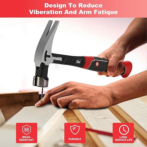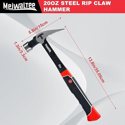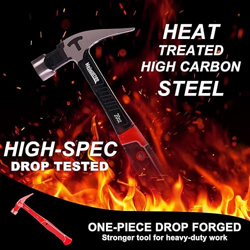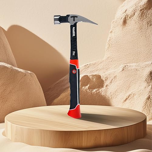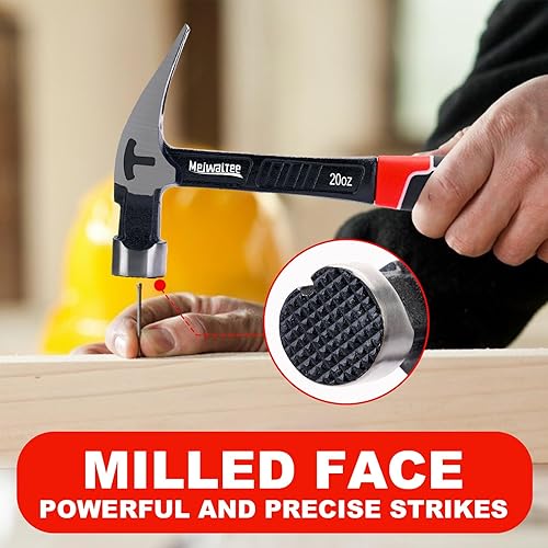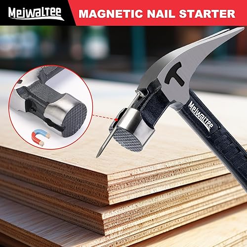Meiwaltee Gerader Klauenhammer,Zimmererhammer mit Magnetischem Nagelhalter, Gefräster Fläche & Stoßdämpfendem Griff - 850g Gewicht