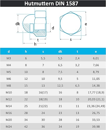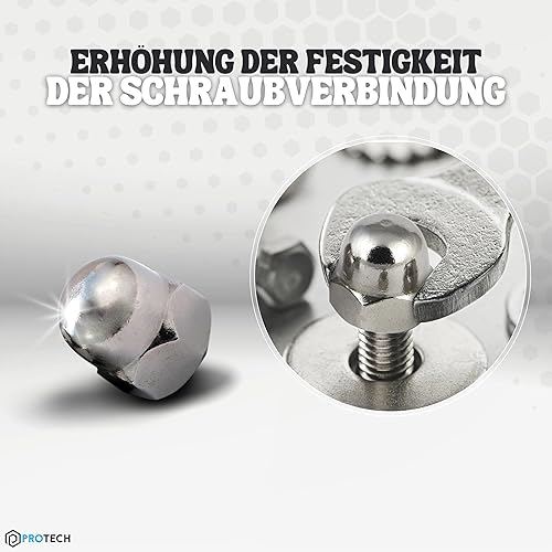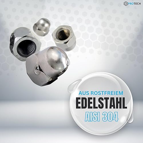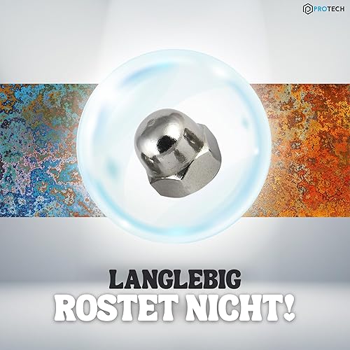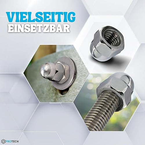 PROTECH 50 Stück Hutmuttern M14 Edelstahl aus rostfreiem A2 V2A Kappenmuttern Sechskantmuttern Muttern hohe Form DIN 1587 für Schrauben Gewindestangen
