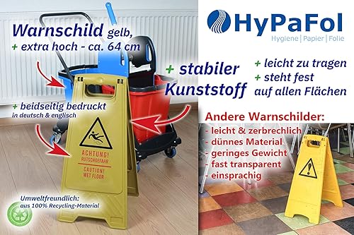 Achtung! Rutschgefahr Warnschild | Senfgelber Recycling Aufsteller zur Warnung vor nassen Böden | Einsetzbar in Hotels, Bürogebäude, Werkstatt, sowohl Innen- und Außenbereich | Beidseitig beschriftet