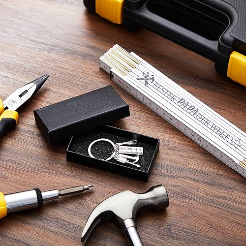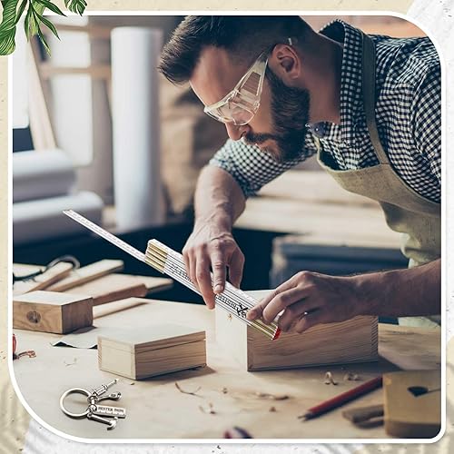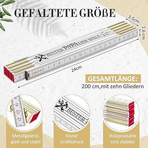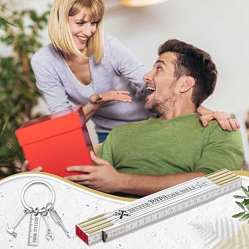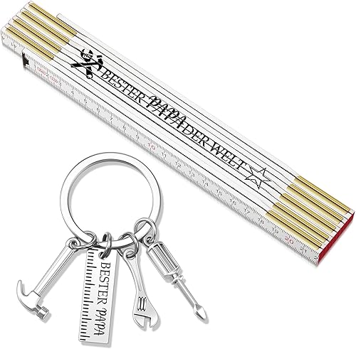 Geschenk Set Zollstock 2 m und Handwerker Schlüsselanhänger Kreativer Gravur Gliedermaßstab 2 Meter Holz (Opa, Holz, Edelstahl, Einheitsgröße)