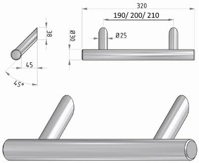 HISKA | Stoßgriff SG-230, 320 mm | Aluminium schwarz eloxiert oder Edelstahl | schräge Stützen 45°, Achsmaß variabel (Aluminium schwarz eloxiert, L320 / A190 mm)