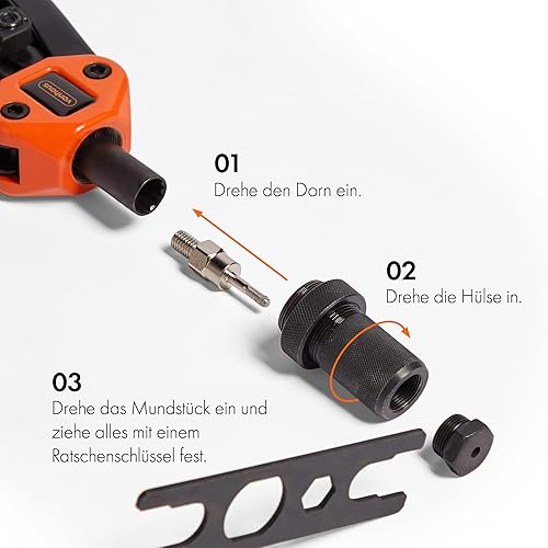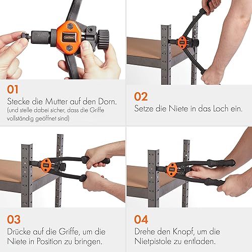 VonHaus Nietmutterzange – Nietwerkzeug – Nietenzange Set – mit M3 M4 M5 M6 M8 M10 M12 Gewindedornen und 150 Nietmuttern – Nietzange mit Tragekoffer