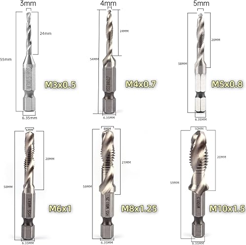 Sechskantbohrer HSS 1/4'M3 M4 M5 M6 M8 M10 Bohrer für metrische Gewindebohrer (M3 + M4 + M5 + M6 + M8 + M10)