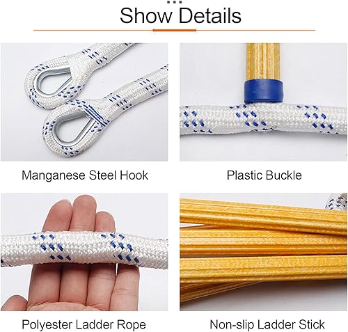 PHONME Strickleiter Erwachsene Feuerleiter Fluchtleiter Kletterseilleiter 3m 5m 8m 10m 15m 20m Tragfähigkeit bis zu 420 kg mit Haken Für Notflucht Für Feuerleitern Und Balk(Size:6m)