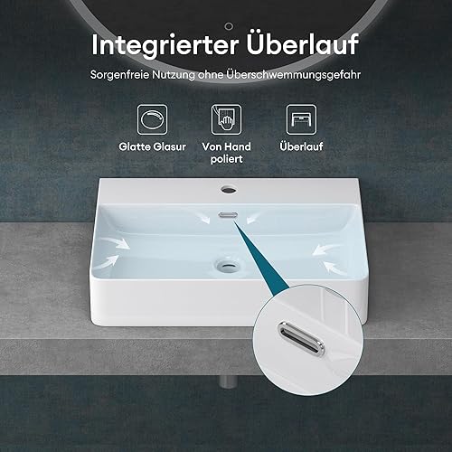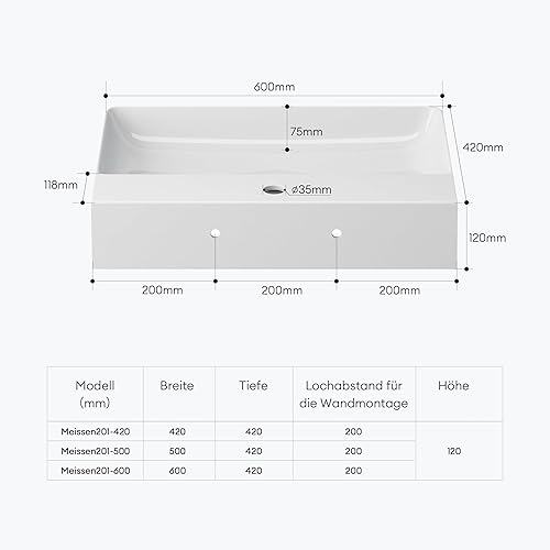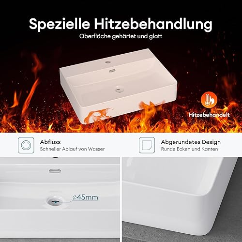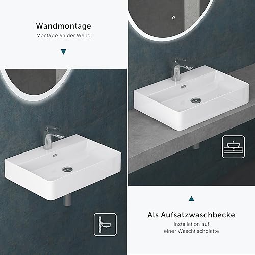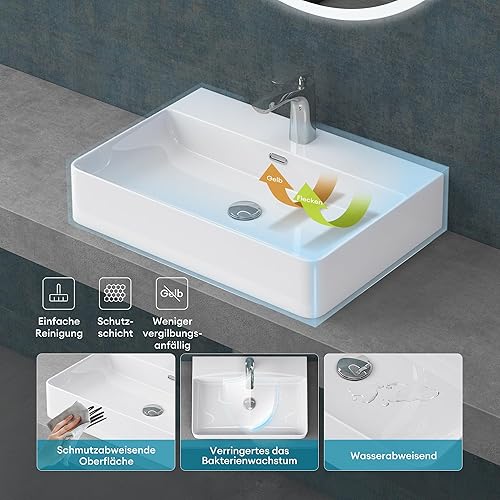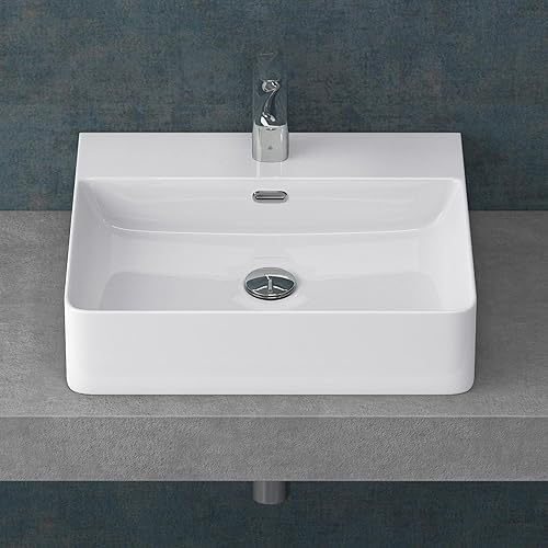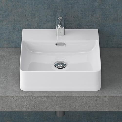 Mai & Mai Waschbecken Aufsatzwaschbecken Meissen201 Waschtisch Weiß glänzend aus Keramik 42x42x12cm inkl. Nano-Beschichtung