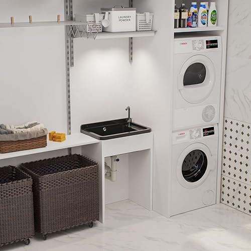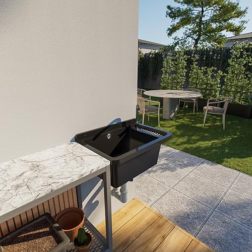 Ausgussbecken Waschbecken Spülbecken Waschtrog draußen Garten Garage Keller Spülbecken Waschküche Werkstatt Großes Becken (Grau)