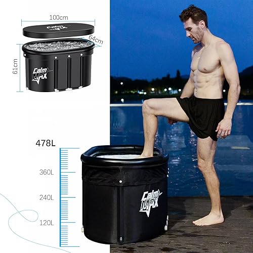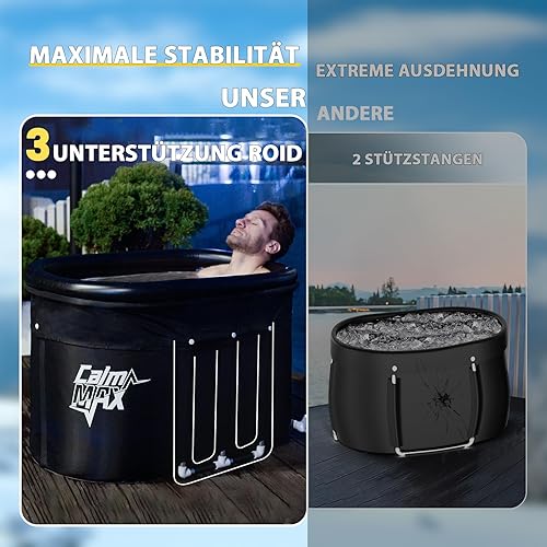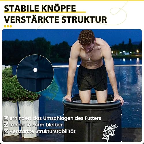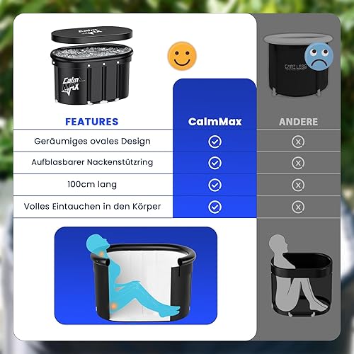 CalmMax Eisbad XL mit Abdeckung und Aufblasbarem Nackenstützring - Faltbare Badewanne Erwachsene, Isolierte Eistonne für Innen und Außenbereich, Kältetherapie für Athleten, Ice Bath für Zuhause