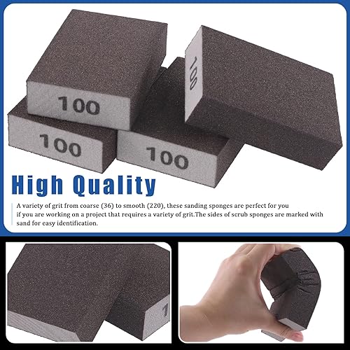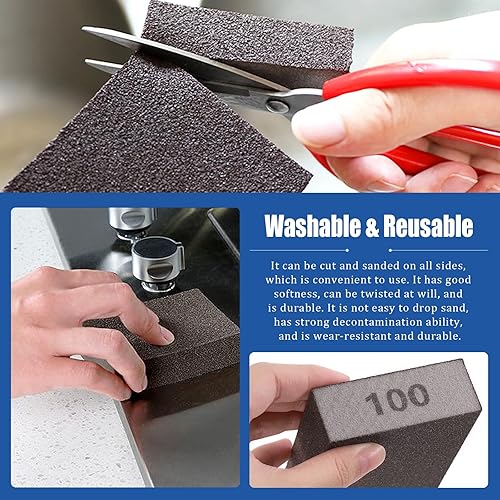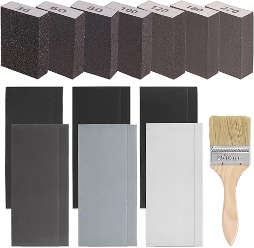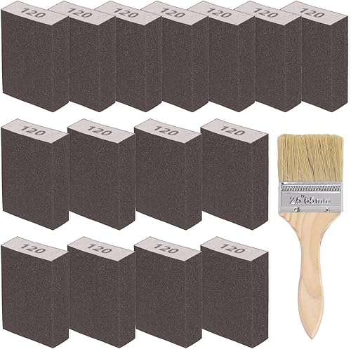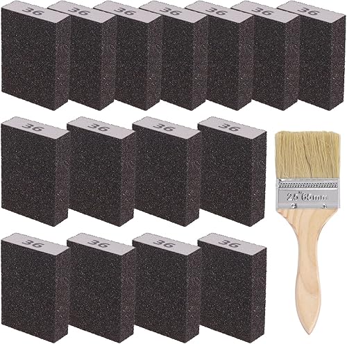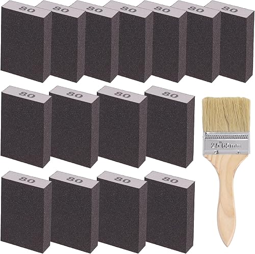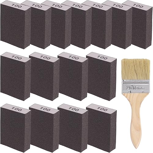 Glarks 16-teiliges Schleifschwamm-Set mit 60er-Körnung, 15 Stück, 10 x 7 x 2,5 cm, waschbare und wiederverwendbare Schleifblöcke und 1 Pinsel, ideal für Holzarbeiten, Trockenbau, Metallpolieren