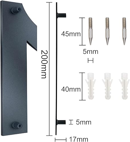 MOLVCE Hausnummer Anthrazit aus Edelstahl Höhe 20 cm, RAL 7016 Anthrazit Hausnummer Massivem Edelstahl Feinstruktur Pulverbeschichtet, Schrift Arial - Ziffer 1