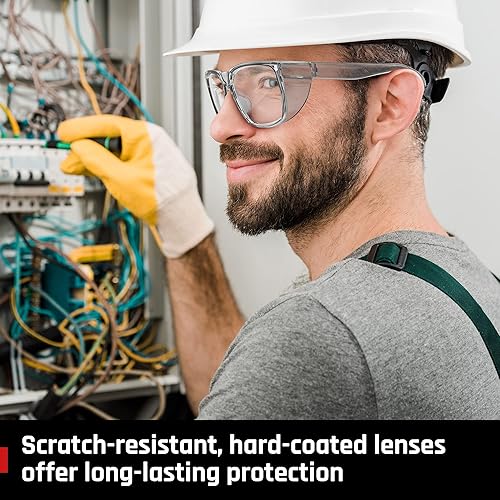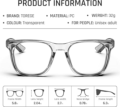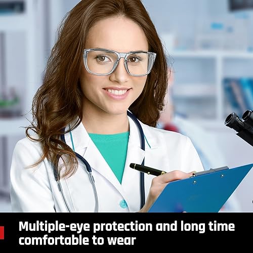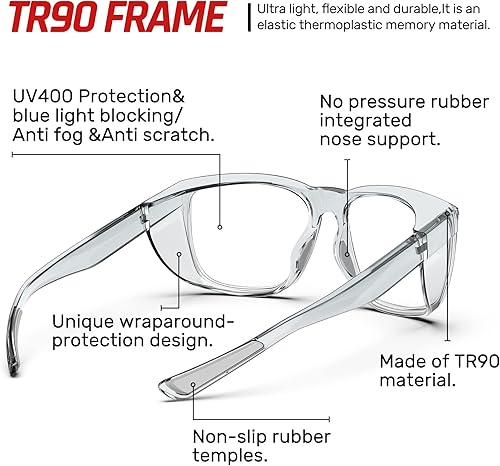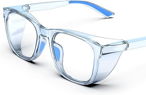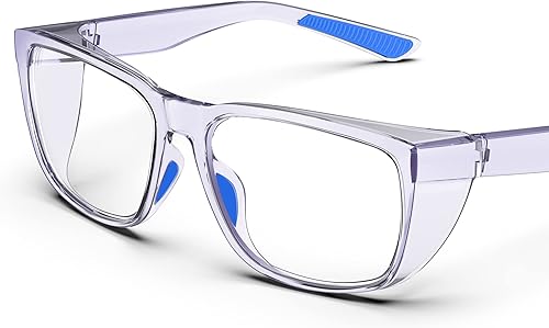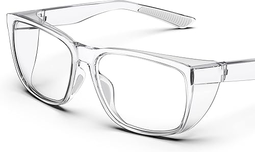 TOREGE Transparente Schutzbrille mit Seitenschutz, beschlagfrei und kratzfest mit rutschfesten Griffen und komplettem UV-Schutz, ideal für Damen und Herren