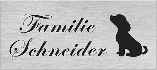 Motiv Edelstahl Briefkastenschild I über 40 Motive zur Auswahl I Klingelschild mit Gravur I Türschild in 100x40mm I Namensschild Selbstklebend - Hund