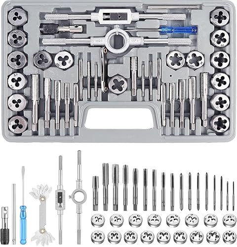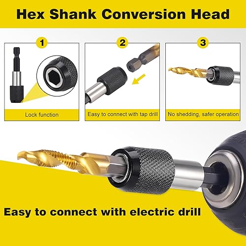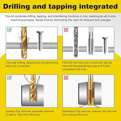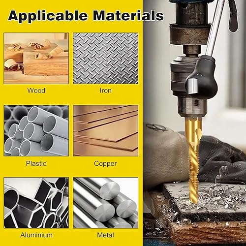 HSEAMALL 13 Stück Gewindebohrer Set,Kombi-Bohrer Gewindebohrer Bit Satz 6mm HSS M3-M10 Gewindeschneider-Set SAE 6-32NC bis 1/4-20NC Bohren Gewindeschneiden und Senken Eisen Aluminium Kupfer Metall