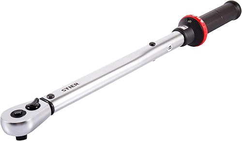 STIER Drehmomentschlüssel Premium+, Umschaltknarre mit 1/2 Zoll Aufnahme, Anzugsmoment: 40-200 Nm, Links- und Rechtsanzug, Sichtfenster für Drehmomenteinstellung am Griff