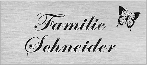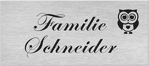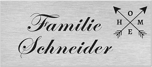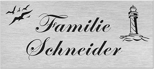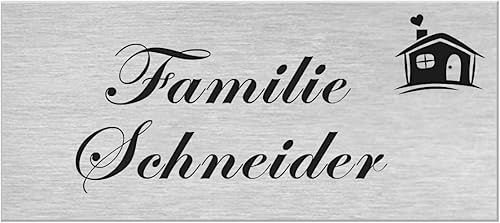 Premium Hausnummer | Firmenschild | Namensschild | Schild mit jedem Wunschtext | selbst gestalten | Aluverbund silber gebürstet | UV Beständig | Witterungsfest für Innen- und Außenbereich H1024