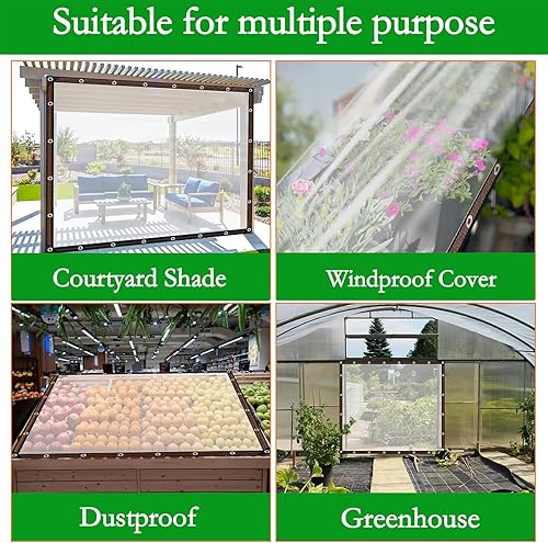 Plane Transparent mit Ösen,1.5X2m Plane Wasserdicht,Plane Durchsichtig für Außenbereich,PVC Terrassenplane, abdeckplane baufolie für Gartenmöbel Pflanzen Gewächshaus Pet Hutch Dach
