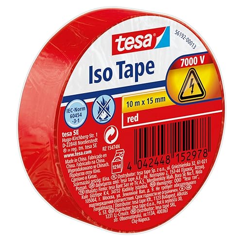 tesa Isolierband im 10er Pack - Selbstklebendes Isolierband, hitzebeständig - Zum Isolieren, Reparieren und Bündeln - 10 m - Schwarz