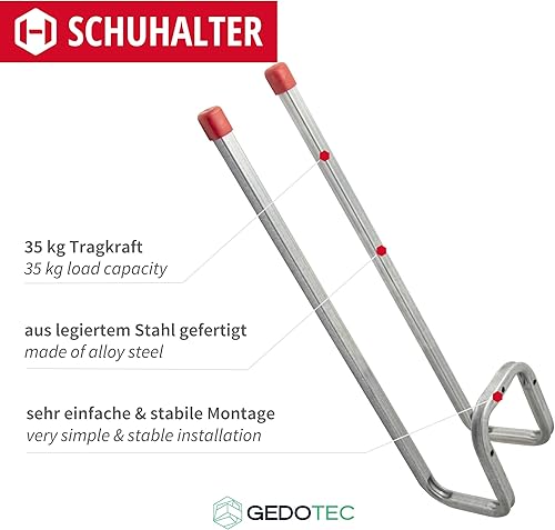 Gedotec Wandhalterung - Doppel-Wandhaken zum Schrauben Stahl verzinkt | 4 Stück Stiefelhaken 400 mm inkl. Befestigungsmaterial | Allzweckhaken aus Metall | Wandhalterung Garage | Wand-Montage