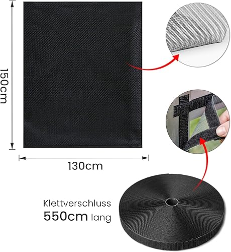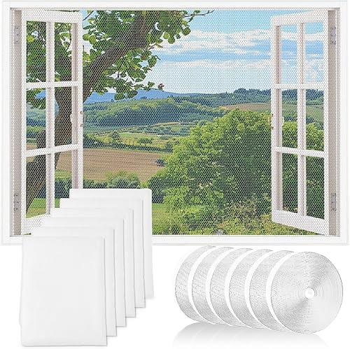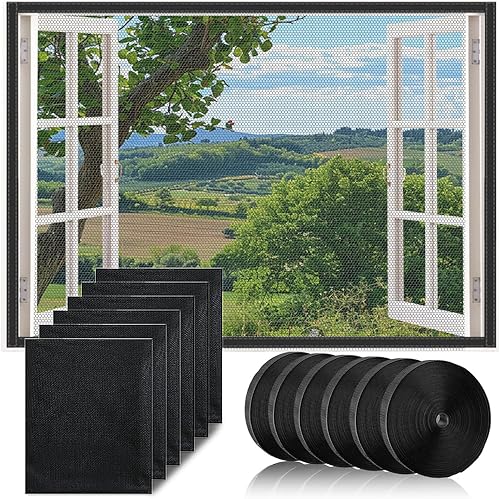6pcs Fliegengitter Fenster, Fliegengitter Zuschneidbar 130x150cm, Fliegennetz fenster, Insektenschutz fenster, Selbstklebend Insektenschutz Fenster mit 6 Rollen Klebeband (Schwarz)