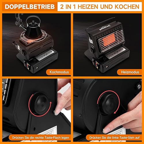 HOMELUX 1,3KW Gasheizung für Indoor Outdoor, Gasheizer, Gasheizung Camping, Heizung Ohne Strom, Gasheizstrahler, Campingheizer, Heizstrahler (HH-808B)