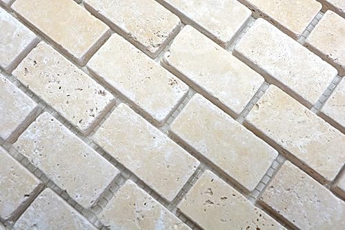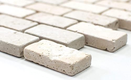 Mosaik Fliese Travertin Naturstein beige Brick Chiaro Antique Travertin für BODEN WAND BAD WC DUSCHE KÜCHE FLIESENSPIEGEL THEKENVERKLEIDUNG BADEWANNENVERKLEIDUNG Mosaikmatte Mosaikplatte