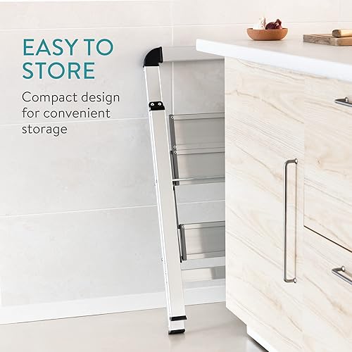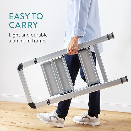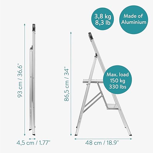Navaris Aluminium 2-Stufen-Leiter - klappbar - Alu Trittleiter belastbar bis 150kg - leichte 2 x 2 Stufen Haushalt Fußtritt Leiter - Industrial Look