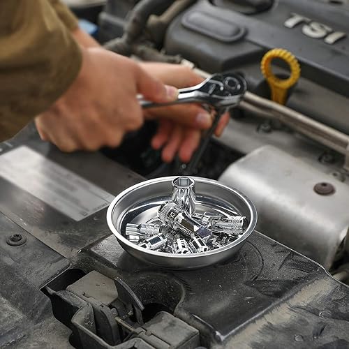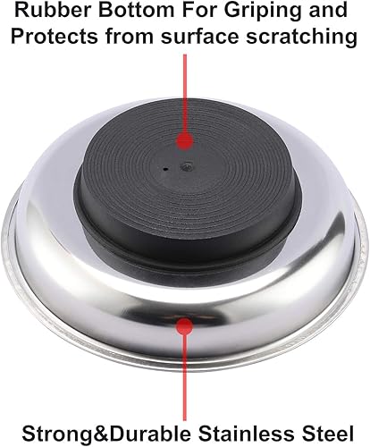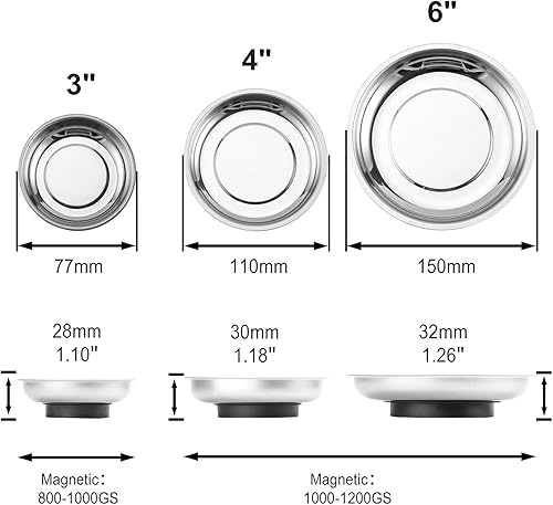 CASOMAN 3-Piece Round Magnetic Trays Set, 3' 4' 6', Stainless Steel Magnetic Parts Tray Set, Magnetic Tray Holder, For Socket Screw, Nuts, Bolts, Metal Parts, Strong and Durable.
