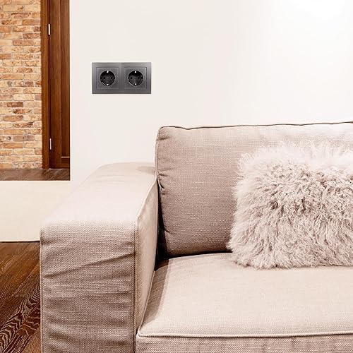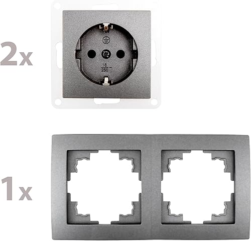 MC POWER Wand Steckdosen-Set | FLAIR | Beginner 2S | 3-teilig | 2x Schutzkontakt-Steckdose mit Rahmen, Doppelsteckdose 250V / 16A Schraubklemme, dunkelgrau anthrazit, matt
