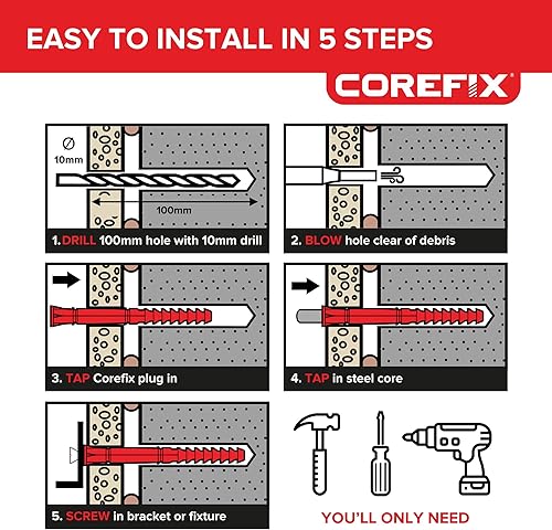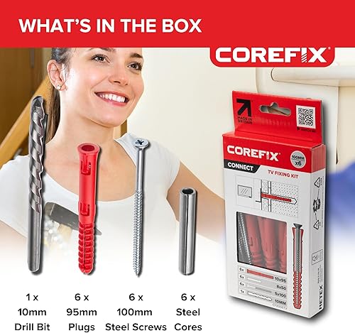 Corefix 6 x 100 mm TV-Wandbefestigungen mit Bohrer im Lieferumfang enthalten – Gipskartonplatten über Blockwerk-Wanddübel und Schrauben zum Aufhängen von Wandfernsehern – verstärkter Stahlkern hält