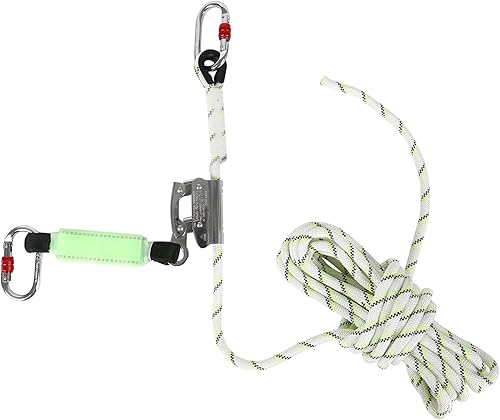 Sicherheitsseil mit 2 Karabiner, 13mm Kernmantelseil, Sicherheitsseil für Fallschutz, Sicherheitsseil Klettern mit Bandfalldämpfer, Sicherheitsklettergurt, 25KN (15m)
