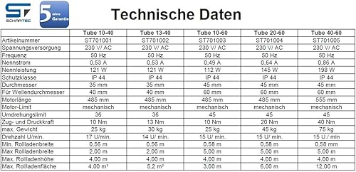SCHARTEC Profi- Rolladenmotor für 40 mm Welle Rohrmotor - Rolladenantrieb Rollladenmotor (SCHARTEC Tube 13-40)