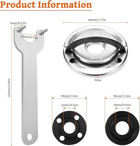 6 Stück Zubehör für Winkelschleifer, M14 Schnellspannmutter mit Flex Schlüssel und Innere Äußere Schleifer Flansch Installation Kompatibel mit 125 mm Winkelschleifern