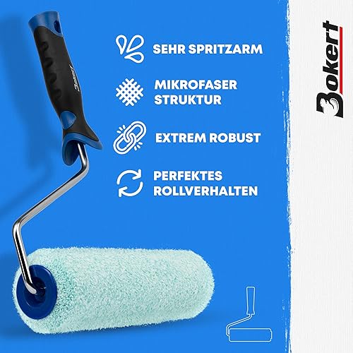 BOKERT® Farbroller - für perfekten Farbauftrag - mit 25cm Farbwalze aus Mikrofaser - für Wand und Decke - Florhöhe 15mm
