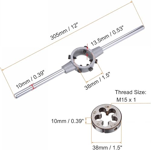 sourcing map Matrize M15x1 Gewinde Rundstempel 38mm M12-M16 Halterung Einstellbare Schlüssel