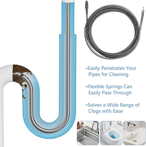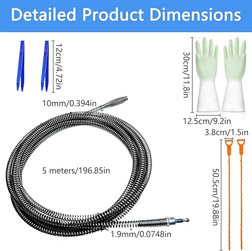 Rohrreinigungsspirale 5m x ø 10mm, Abflussreiniger Spirale Abfluss Rohrreinigung mit Manuellen Adaptern Handschuhe 2 Pinzette, Universal Multifunktionale Abflussspirale für Hartnäckige Verstopfungen