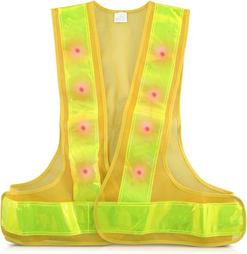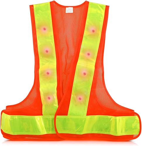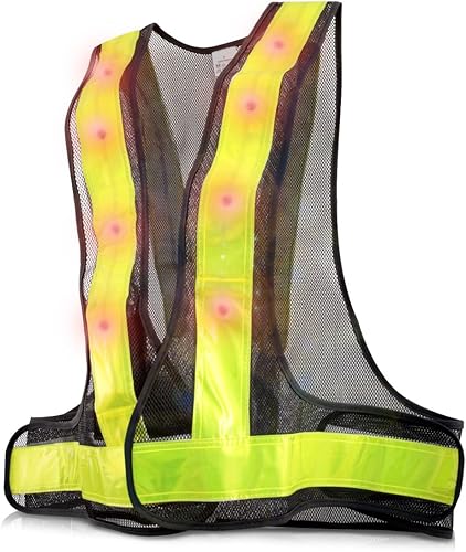 kwmobile LED Warnweste Reflektor Sicherheitsweste - Security Weste mit 16 roten LED Lampen - Reflektierende Streifen Warnweste für z.B. Joggen Reiten