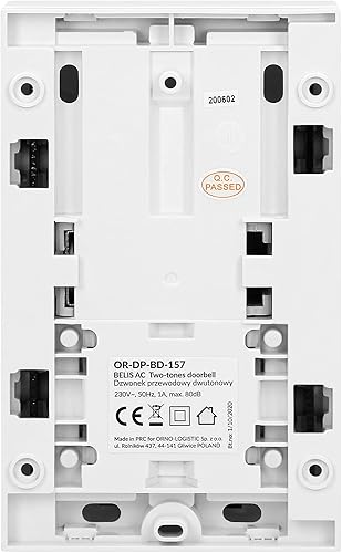 Orno DP-BD-157 BELIS Türklingel Kabelgebunden Mechanischer Gong mit eingebautem Transformator Zweiton IP 20 80dB Weiß 230V