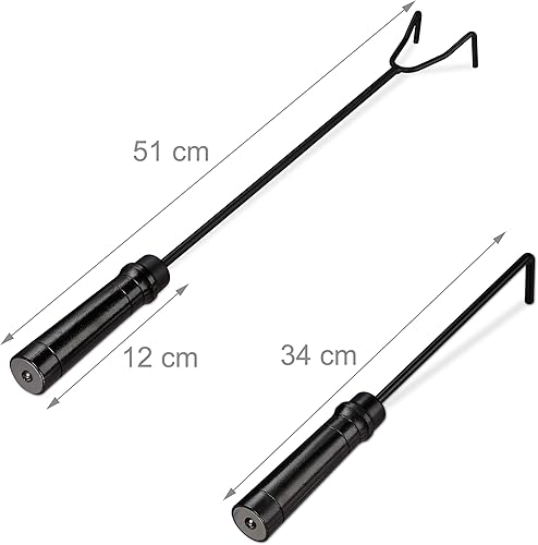 Relaxdays Schürhaken Set, 2 Feuerhaken für Kamin, Ofen, Grill und Feuerschale, Kaminhaken Stahl, Aschekratzer, schwarz, 2er