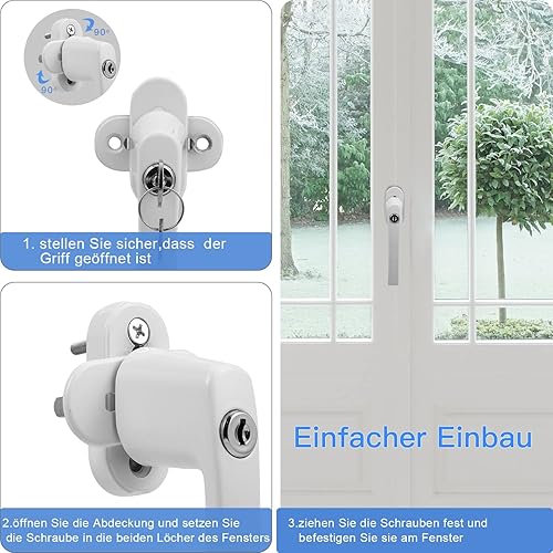 Herrselsam 8X Fenstergriff Aluminium, Abschließbar Sicherheitsfenstergriff Fensterschloss Kindersicherung mit Schlüssel, Schloss in Stiftlänge 35mm, Weiß
