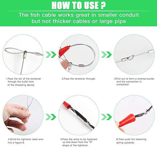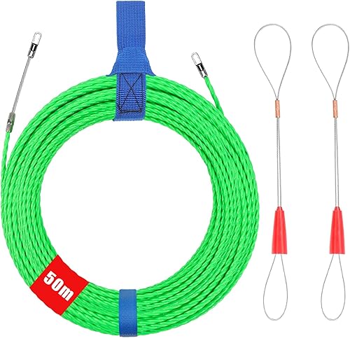 Kabeleinziehhilfe 50m, Einziehspirale Zugdraht mit 2 Führungsfeder, Einziehband φ4 mm, Kabeleinzug Einziehhilfen in Ideales Einzugsband zur Kabelverlegung Leerrohre, Grün
