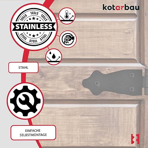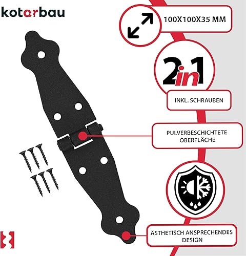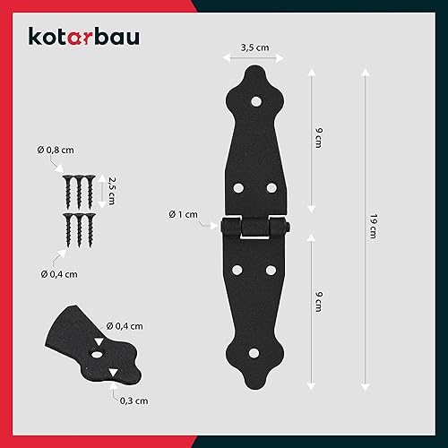 KOTARBAU® 4er Set Ladenband Türbänder 150x200x35 mm aus Pulverbeschichtetem Stahl Torscharnier Türband Schwarz Scharniere Klappbar Fensterscharnier Holztür Gartentor Scharnier Kistenband Torbeschlag