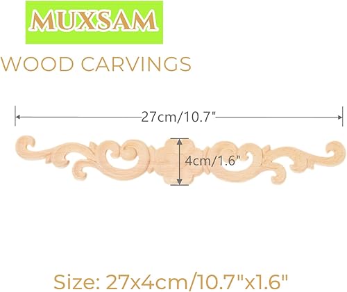 MUXSAM 2pcs 27 * 4cm Holz Skulptur Lang Corner Flourish Applique Blumenmuster Möbel Deko Europäischer Stil