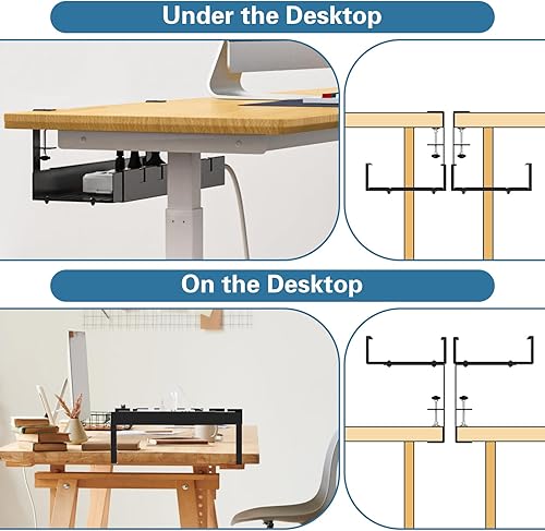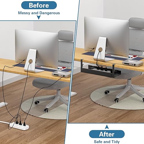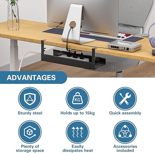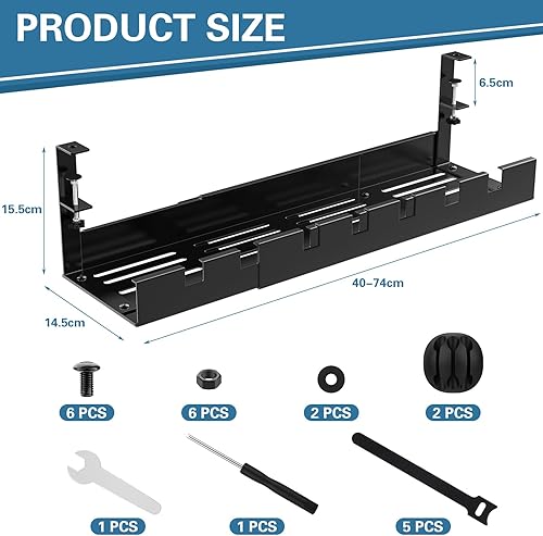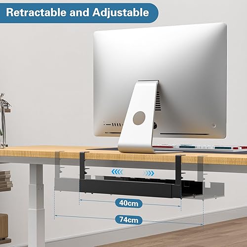 Otauoaea Kabelkanal Schreibtisch Ohne Bohren - Einziehbar 40-74CM Kabelmanagement Schreibtisch - Länge Verstellbarer Kabelhalter Kabelwanne Tisch Inkl. Zubehör - Kabelkorb für Büro - Schwarz