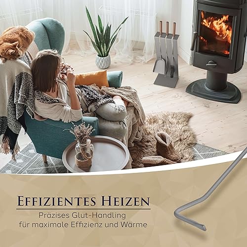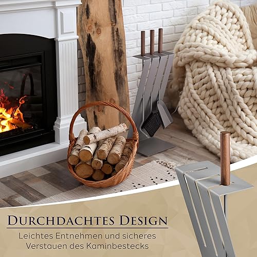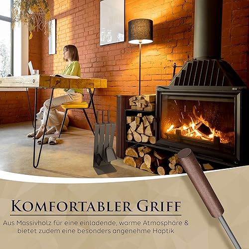 Kaminbesteck modern - Ofenbesteck mit Schaufel, Schürhaken, Besen - Kaminzubehör Kamingarnitur