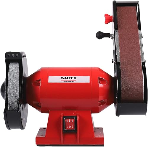 WALTER Kombischleifer 240 W, 230 V, Schleifbock, Funkenschutz, inkl. Schleifband & Schleifscheibe, sehr kraftvoll, Leerlaufdrehzahl 2950 min-1, an der Arbeitsfläche fixierbar, justierbarer Bandlauf