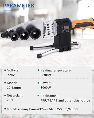 BAOSHISHAN 20-63mm Kunststoff Schweißgerät mit Digitalanzeige Rohrschweißmaschine für PPR/PE/PP 1000W 220V