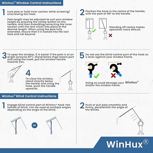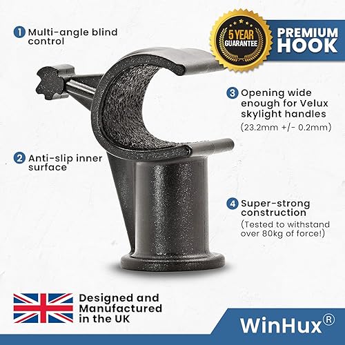 WinHux Haken-Ersatz/Ersatzteil, kompatibel mit WinHux Dachfenstern und Jalousien, passend für Teleskop-Verlängerungsstange mit ACME-Gewindestangenhaken, Teleskopstange, Fensteröffnerhaken