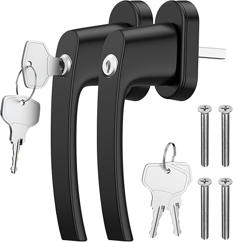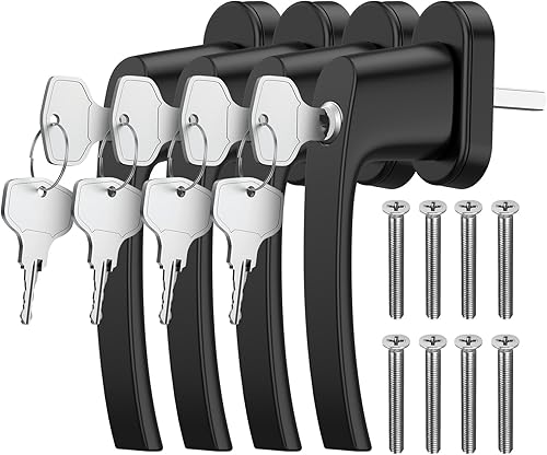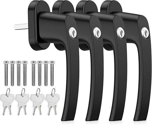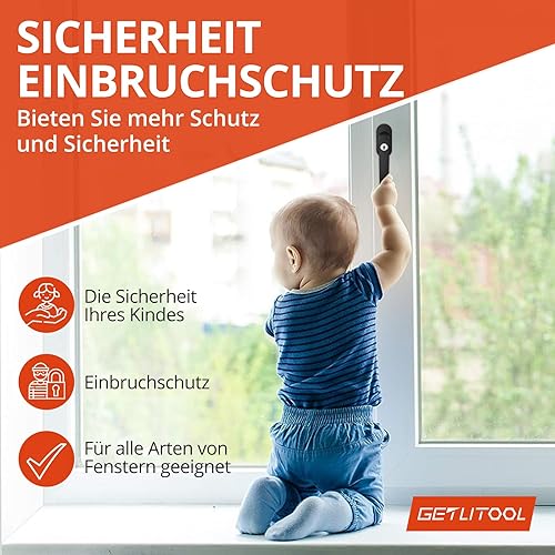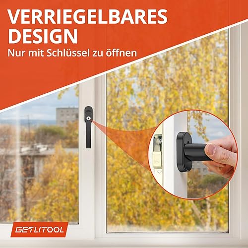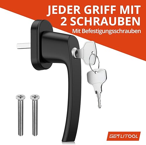 GETLITOOL Fenstergriffe Abschließbar, 4tlg Fensterschloss Aluminium mit Schlüsseln, Sicherheitsfenstergriff in Stiftlänge 35mm, Kindersicherung Fenstersicherung für Fenstertür Heimsicherheit-Schwarz
