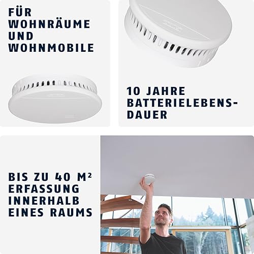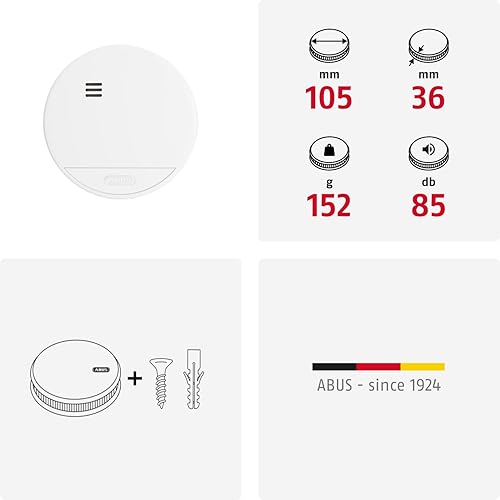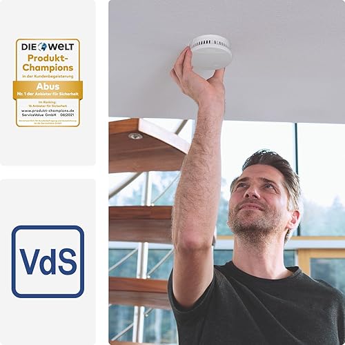 ABUS Rauchmelder RWM150 - langlebige 10-Jahres-Batterie - für Wohnräume und VdS geprüft nach DIN EN 14604 - 85 dB lauter Alarm - Weiß