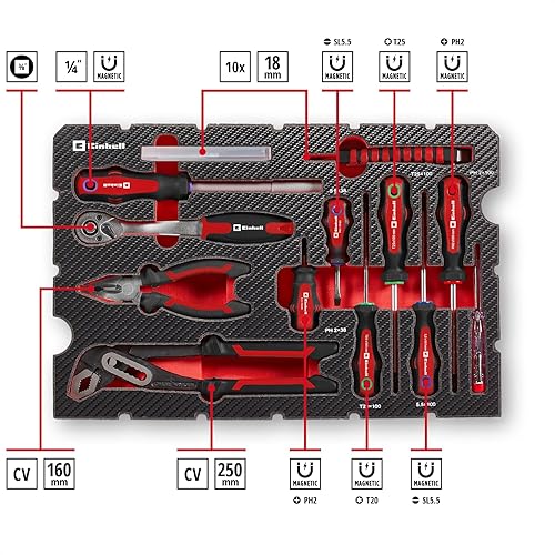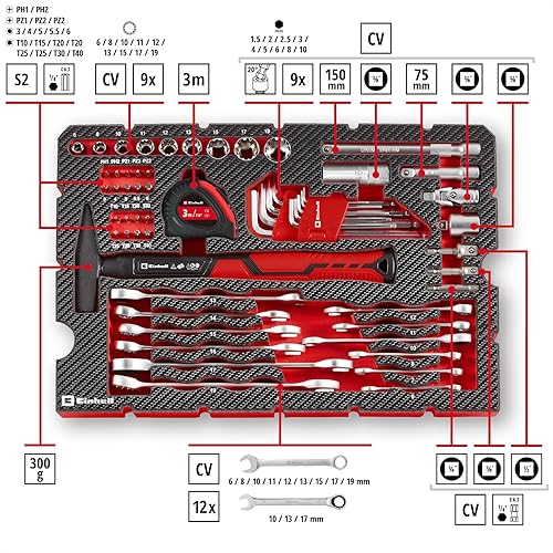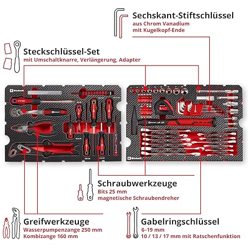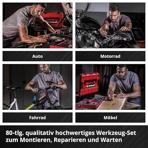 Original Einhell E-CASE 80-tlg. Werkzeugkoffer (Werkzeug-Set im robusten, stapelbaren Kunststoffkoffer als ideale Grundausstattung für den Haushalt, die Werkstatt oder unterwegs)